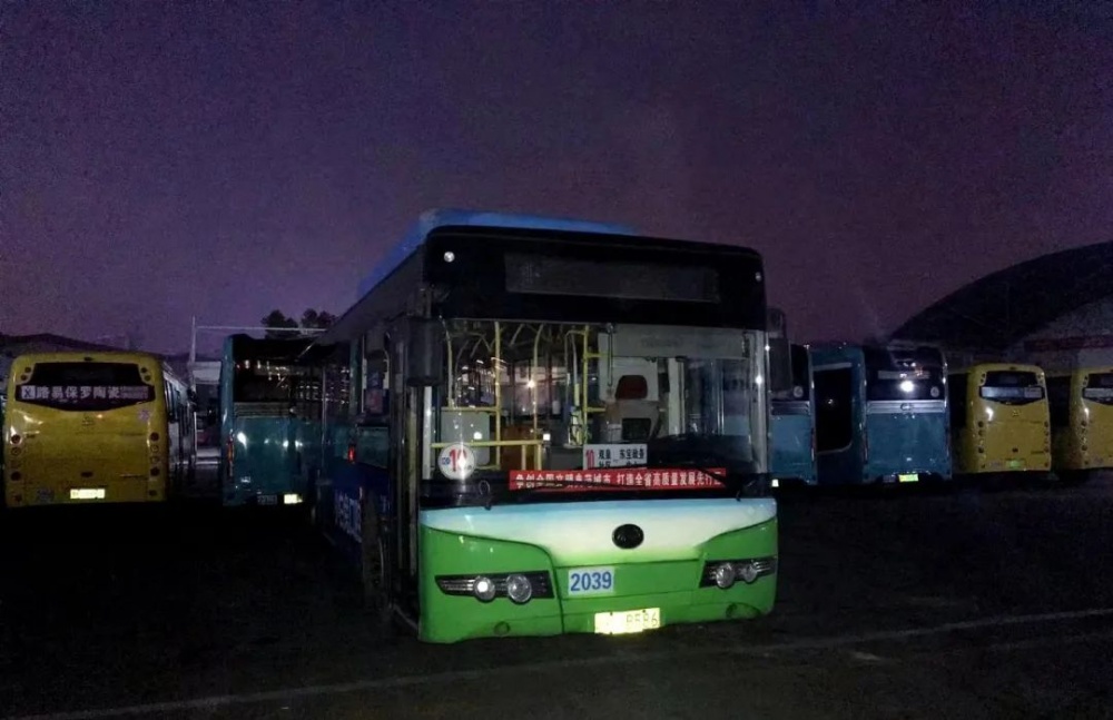 4點30分,魏全兵到達公司停車場,對“老搭檔”進行車身、燈光、胎壓、機油等每個項目例行檢查,考慮到過節(jié)比平常更要注重安全,他又反復(fù)巡檢確認(rèn),這才放心啟動車輛。他運營的這趟班是公司值班車(接送首班車的駕駛員、后勤人員),從雙泉小學(xué)到東寶停保場,將沿路的同事一一接上,送往目的地后,他再開始一天的營運工作。